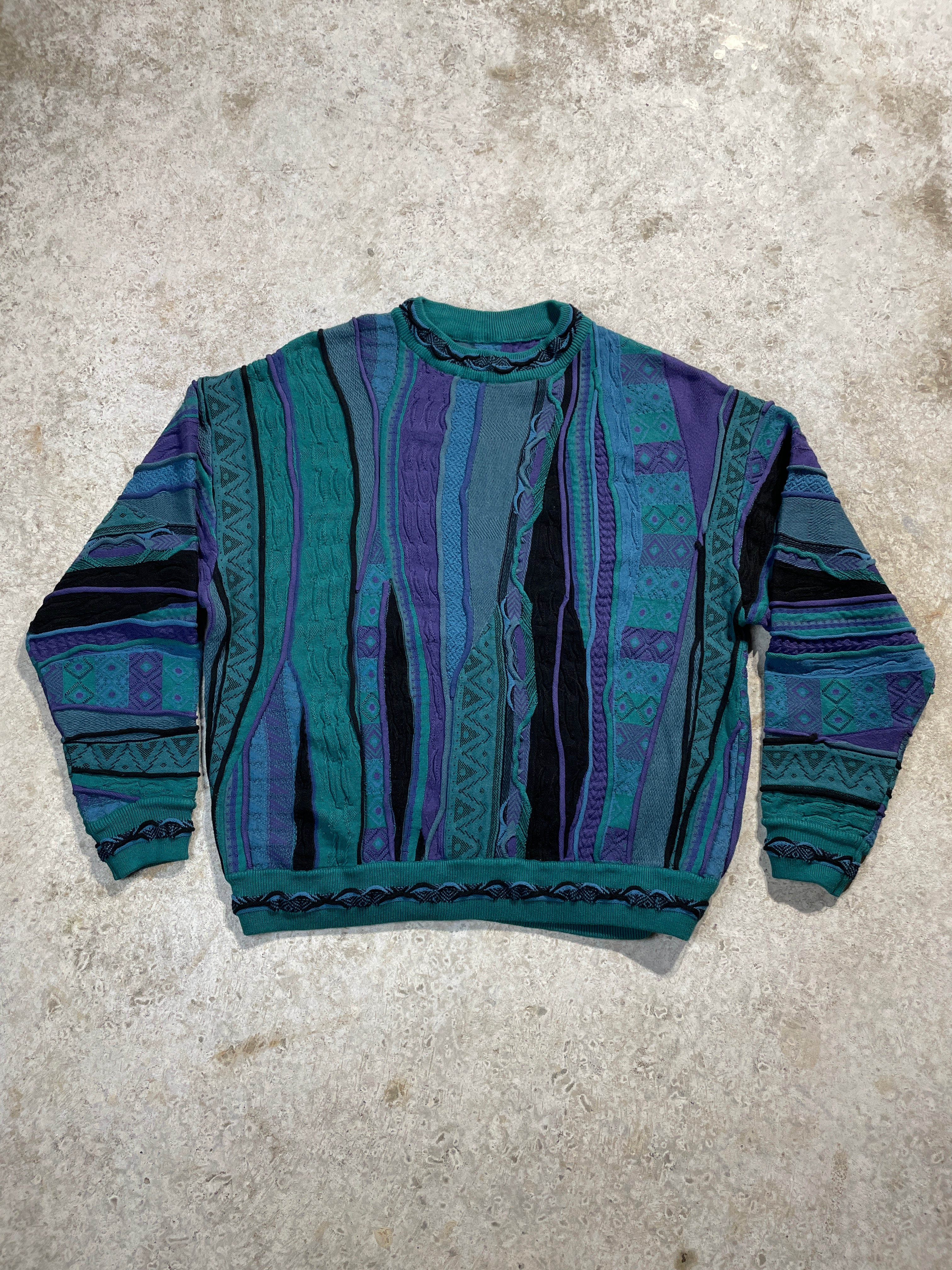 Vintage Green, Purple, and Blue Knit Coogi Type of Sweater