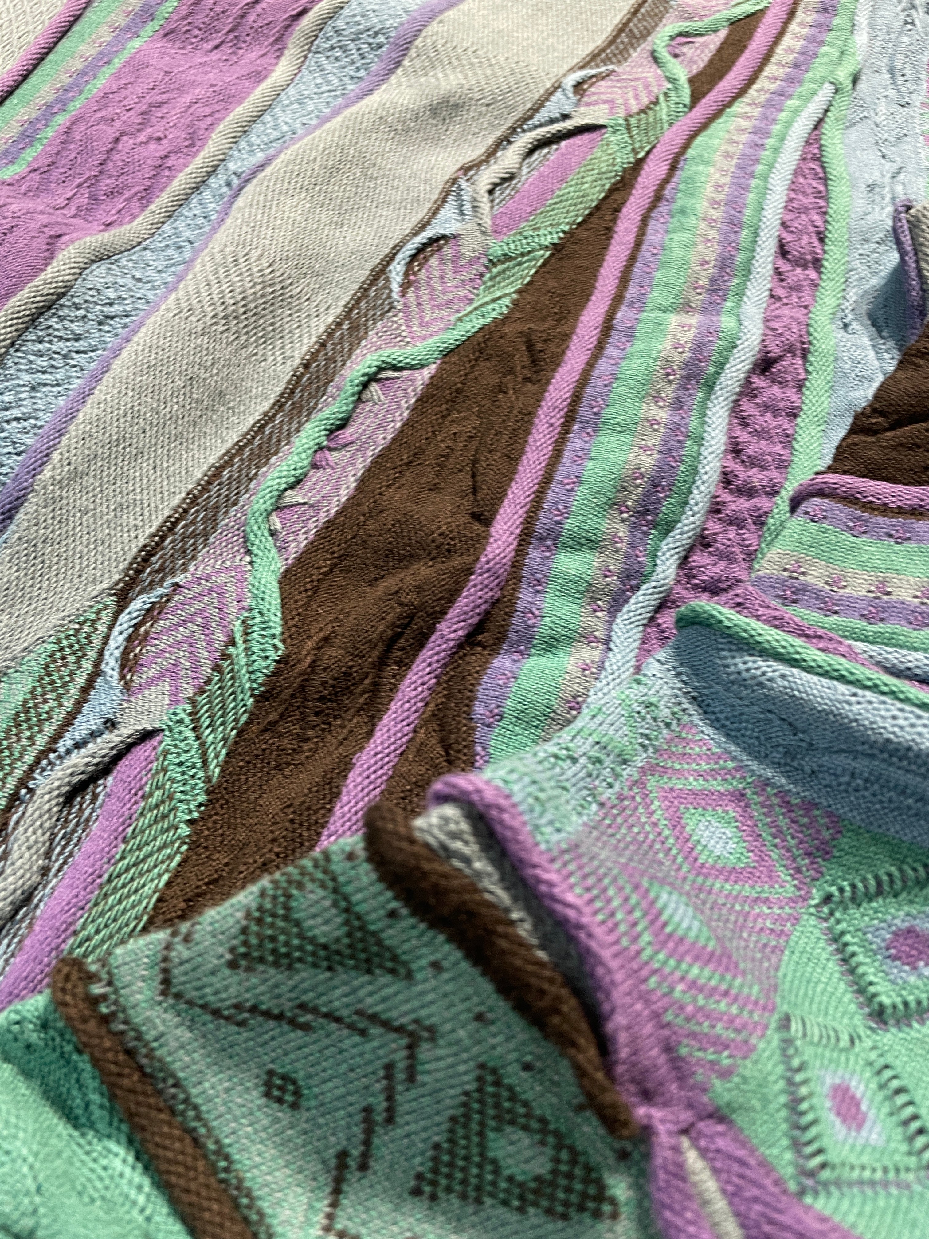 heavyweight 3D texture sweater just like a coogi, fits Large but could fit Large - X-Large , Green and Purple colors with awesome patterns, oversized and super comfy