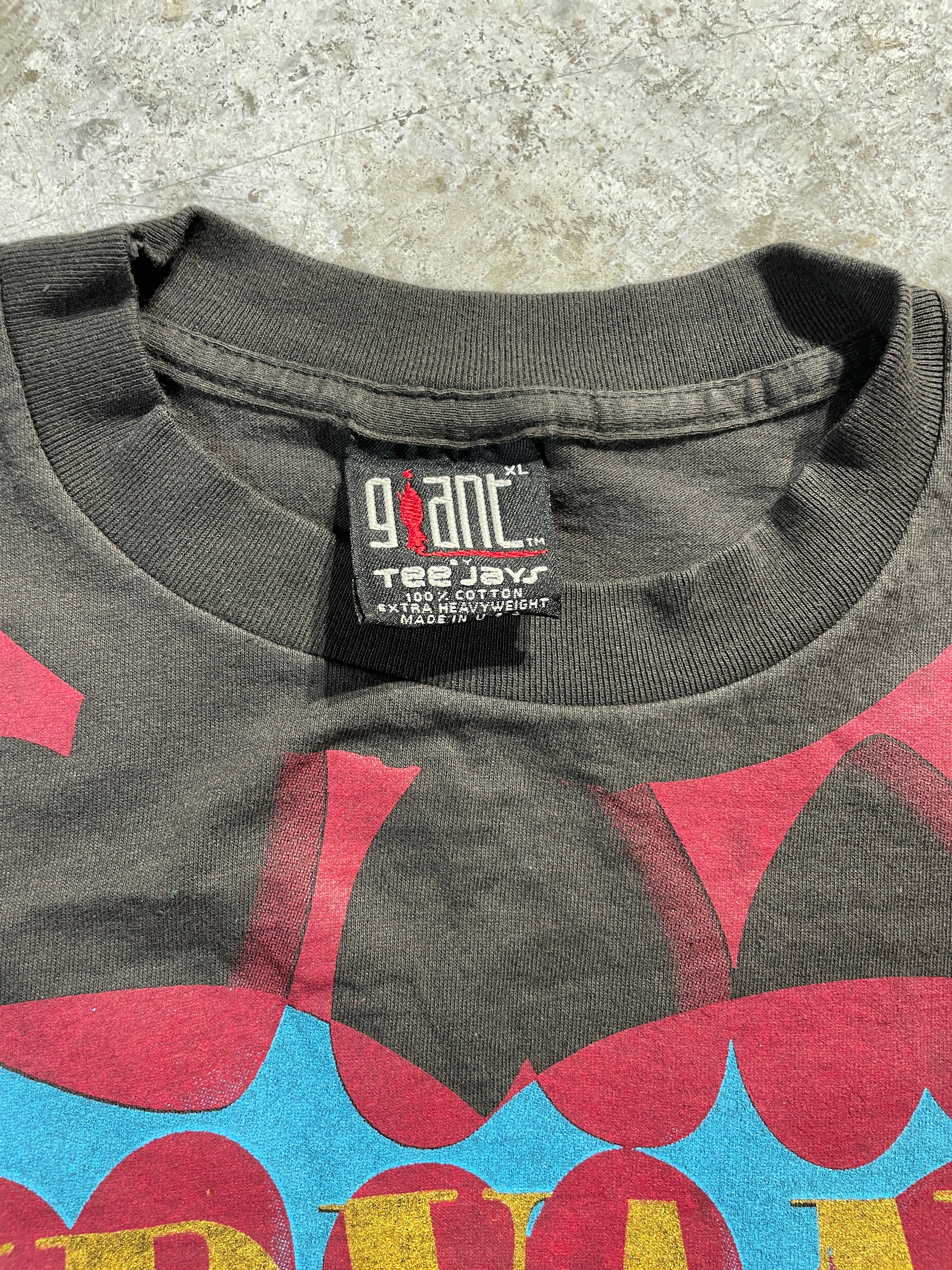 1993 Nirvana In Utero All Over Print Hearts T-Shirtsize: X-LargeGIANT Tag made in USAsingle stitch faded black heavyweight cotton tee with all over front and back hearts print