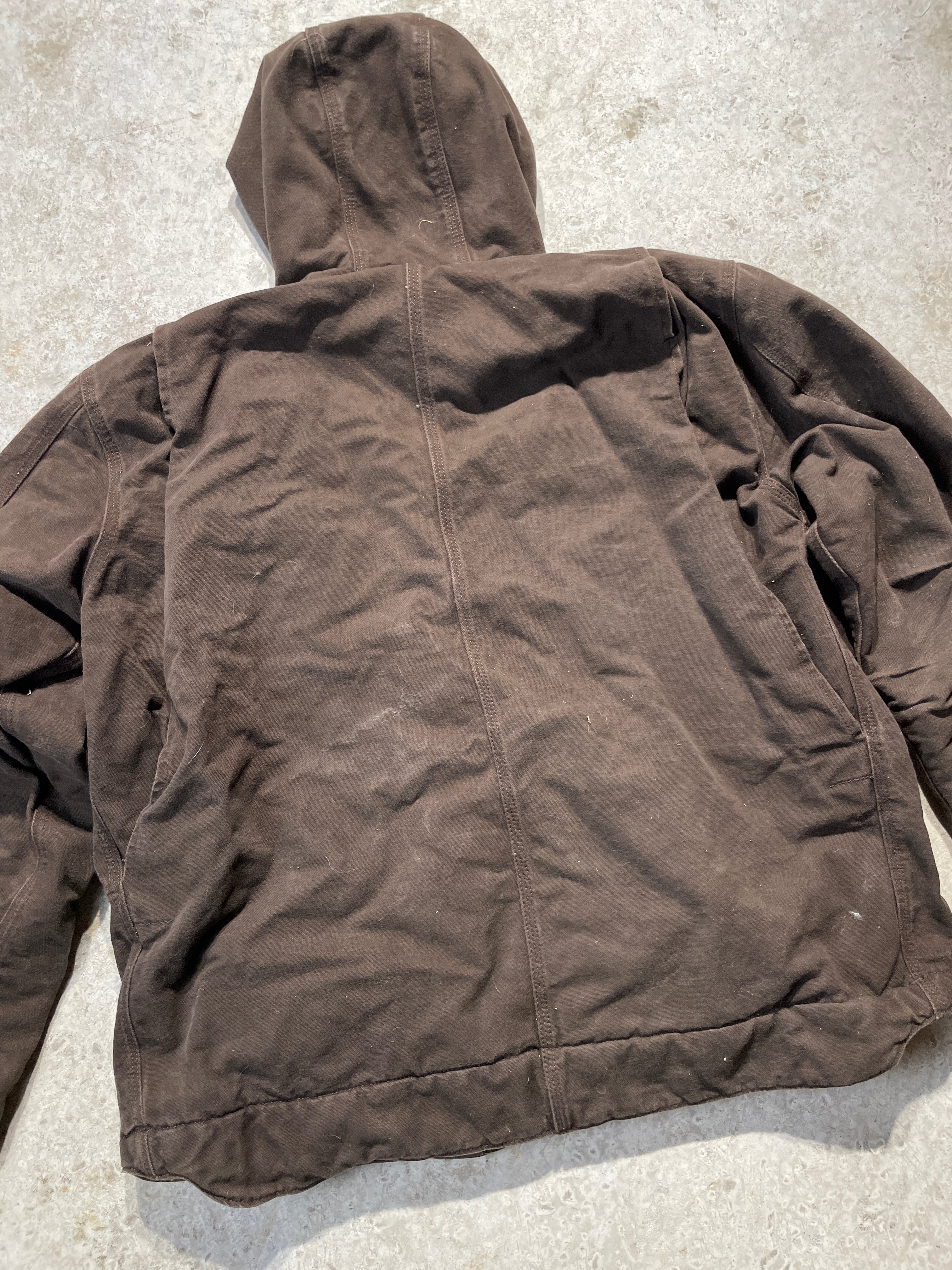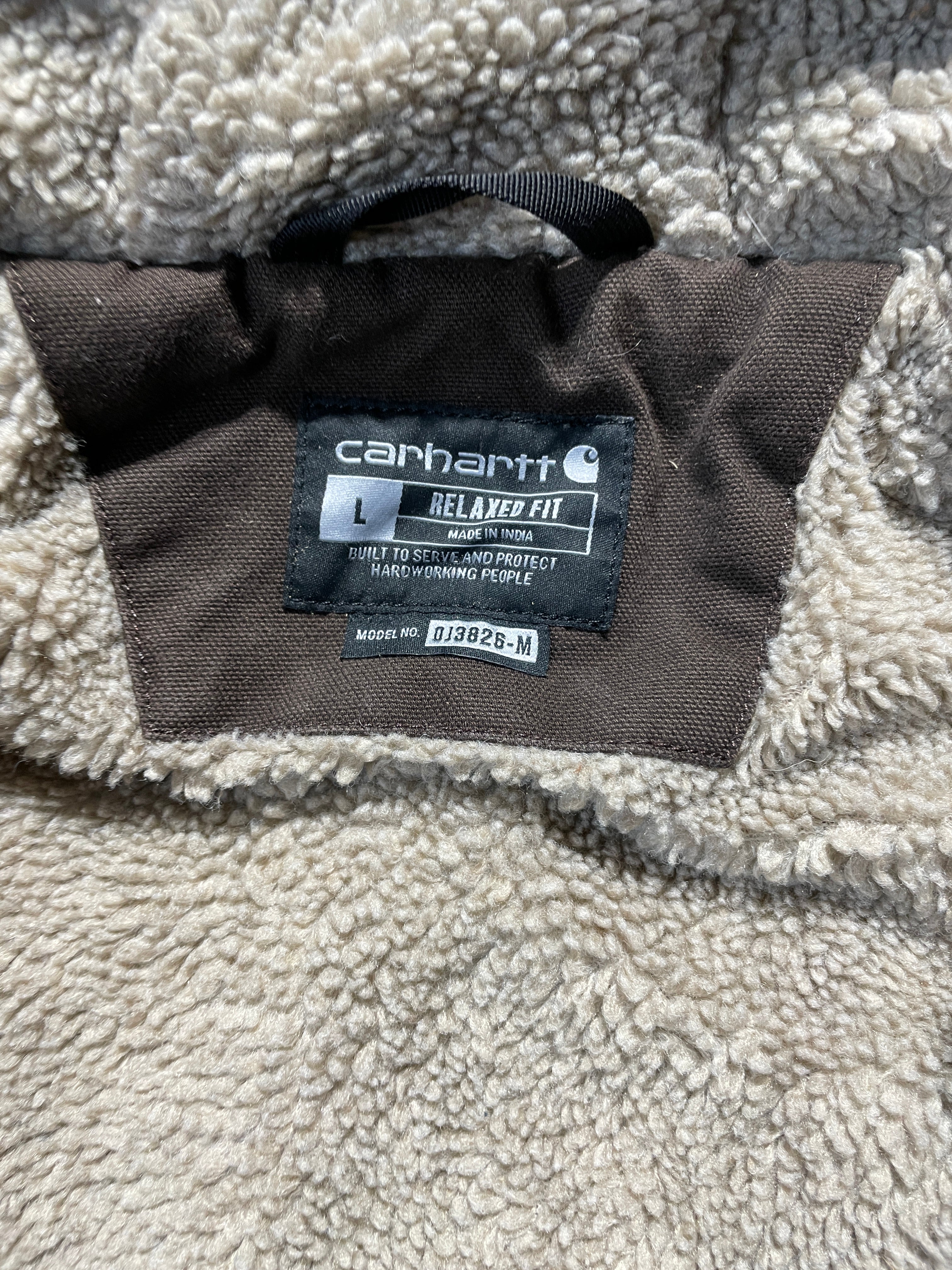 Brown Carhartt Hooded Sherpa Lined Jacket size: LargeCarharttBrown heavyweight Carhartt jacket with the soft sherpa lined inside, amazing for the cold days